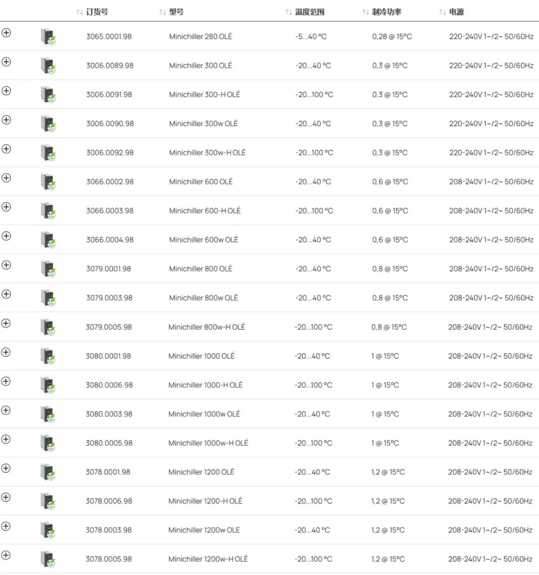 - 新增产物型号:Minichiller 800,Minichiller 1000和Minichiller 1200
